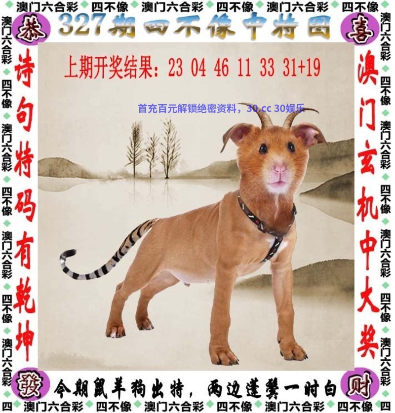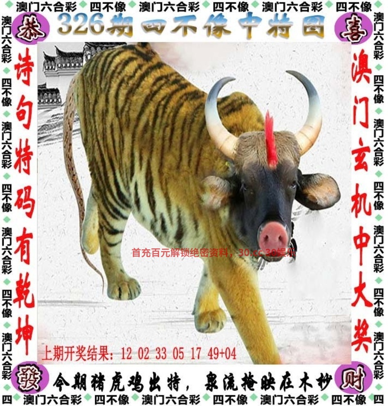| 326期:今期猪虎鸡出特,泉流掩映在木杪 ①杀:马蛇鼠 ②图解特肖:猪虎鸡龙猴 ③合双+大数 |